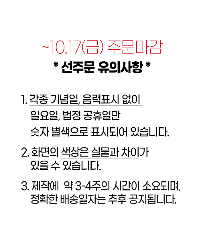 주문하신 상품은 결제 완료 후, 익일 발송(월~금)을 원칙으로 하며,