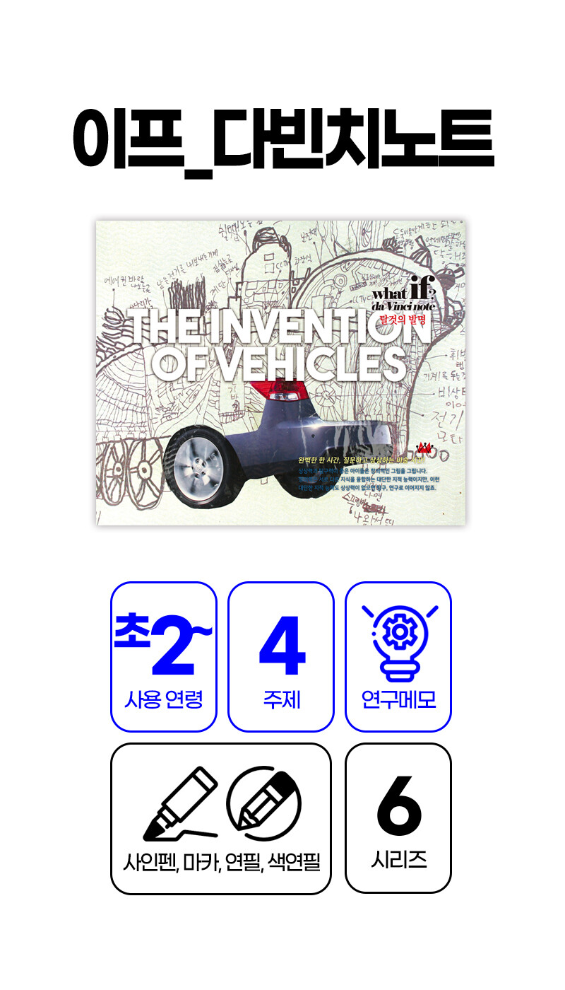 이프, 다빈치노트 시리즈는 탄생하게 되었습니다. 이프, 다빈치노트의 주제들은 다빈치가 자신의 노트, 코덱스에 남겼던 연구메모와 스케치들 에서 영감을 받아 정리되었으며 유사한 주제를 놀라운 아이디어와 솜씨로 표현해낸 또래 아이들의 아동화를 함께 소개하고 있습니다.